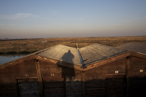 La démarche de Gilles Abegg est unique. Loin des effets de mode et voulant capter l’ensemble des atmosphères des lieux et des hommes avec un seul cliché, son travail est celui de la découverte, du contact. Dans la lignée des photographes humanistes, mais avec les techniques et le regard de notre époque, nourri de références littéraires, musicales et picturales, il s’abandonne à son sujet. Pour mieux le mettre en valeur. Une simple tête de veau sur un étal d’un marché, la danse des éoliennes sur les collines du Morvan, le cri des blocs des carrières de pierre de Bourgogne, la matière brute du bois d’un luthier, la masse d’eau cerclant dans la brume les Îles Féroé, ou perdu au milieu du frère Océan, le visage d’un enfant, ces photographies nous accompagnent depuis plus de trois ans. Elles vivent au cœur de la Ville, de la région.